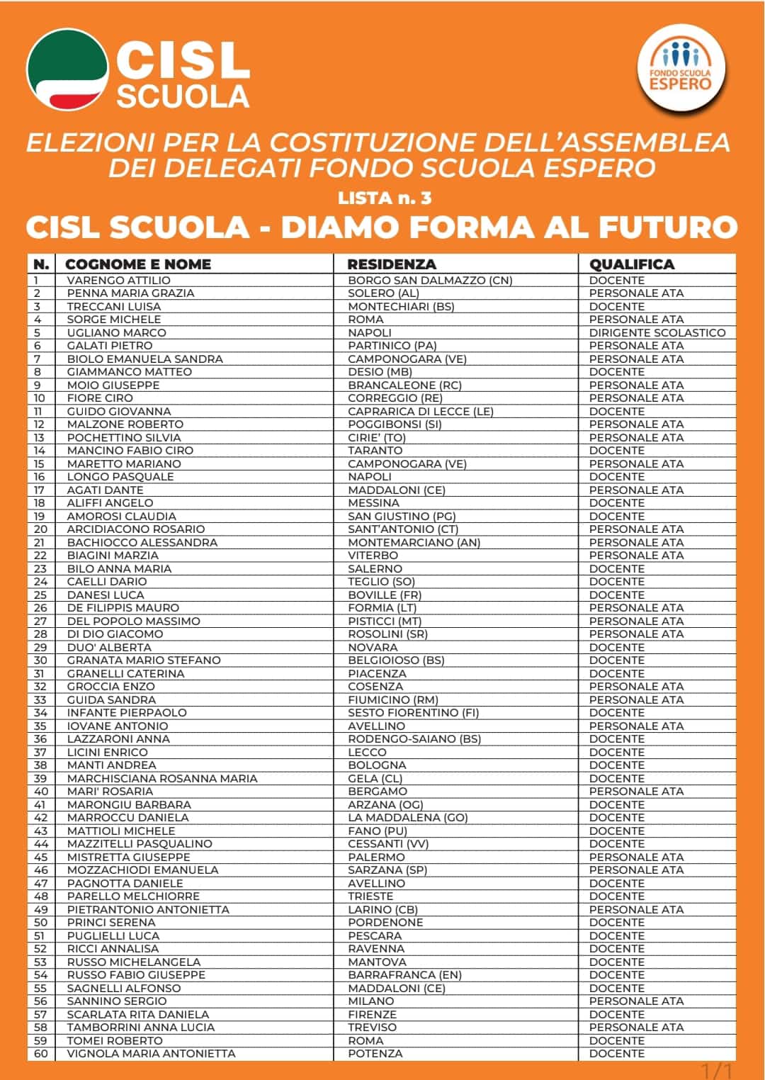 CISL SCUOLA PIEMONTE 27-28-29 Ottobre Elezione rinnovo dell'assemblea dei delegati del fondo Espero